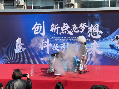 在成果展陈区,集中呈现同学们在人工智能、生态环保、智慧生活等领域的发明创造,这里有会跳舞的机器人天团,他们钢铁身躯藏着最in的律动; 有如雁阵般的无人机编队,那是我们用代码书写的天空诗行!还有云雾缭绕的干冰秀场,当科学魔法与艺术碰撞, 定会让我们眼前一亮。